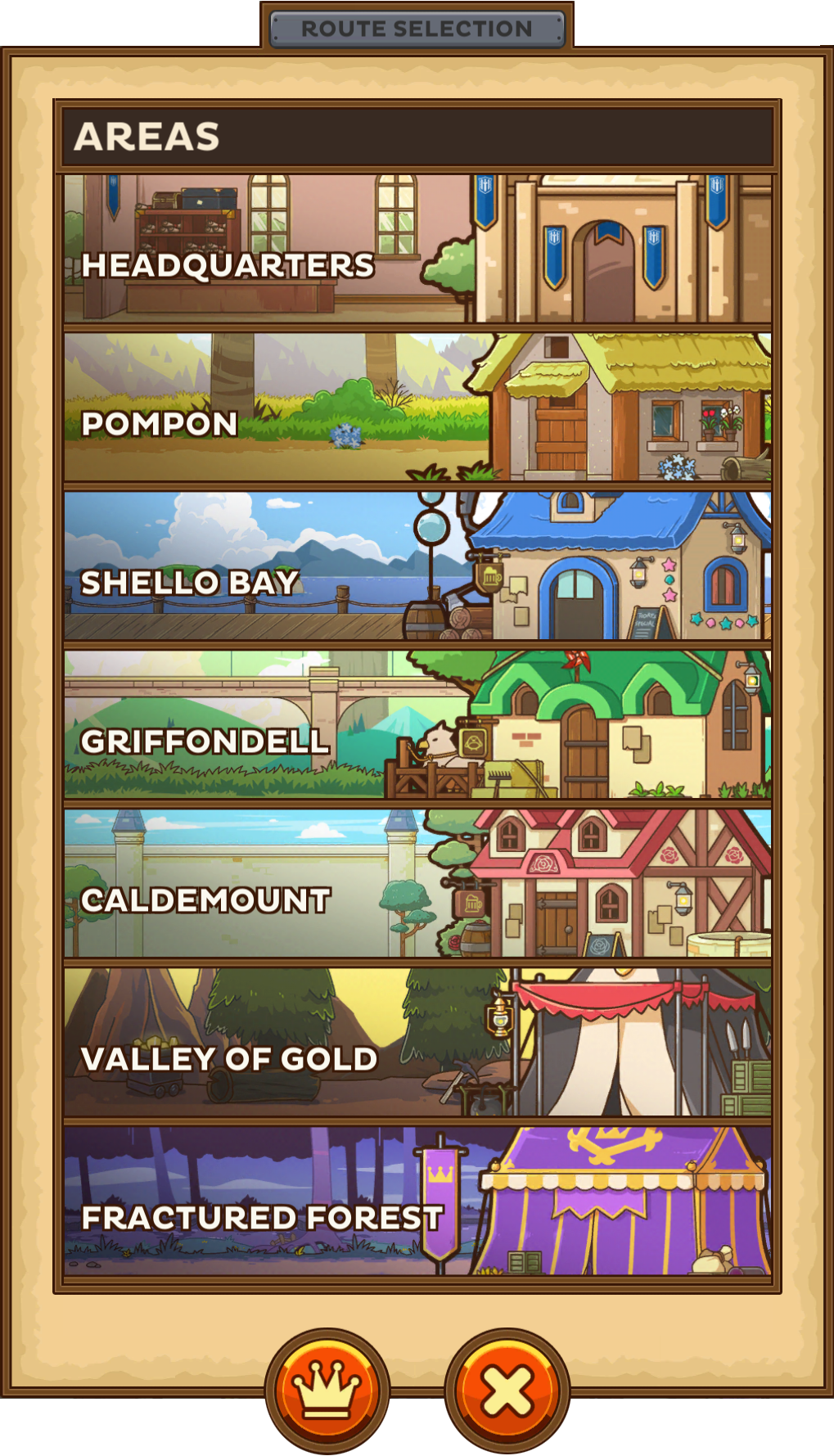There are 7 areas all together including the Postknight Headquarters. Each area has its own unique equipment, deliveries, items, NPC's, quests and style. Every area has access to other Areas and Routes, a Travelling Merchant, a Chief, Girls, Blacksmith, Alchemist and Merchant.