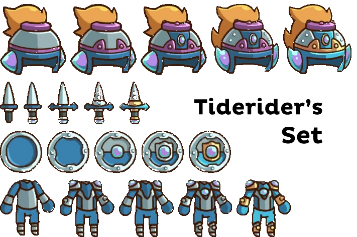 | Tiderider's Suit | Defense +10 | Sidesteps - Increases dodge rate by 2% | Shop | 23250 Coins, 16 Copper Ore, 38 Bag O' Blooplets |